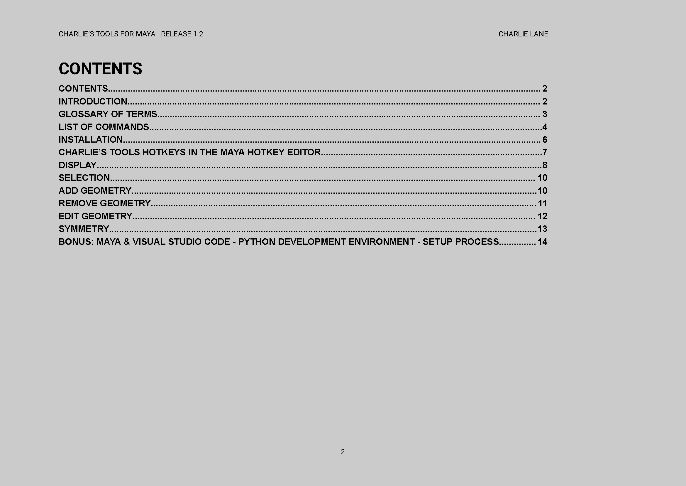 Access to all future 'Charlie's Tools for Maya' 1.x updates
