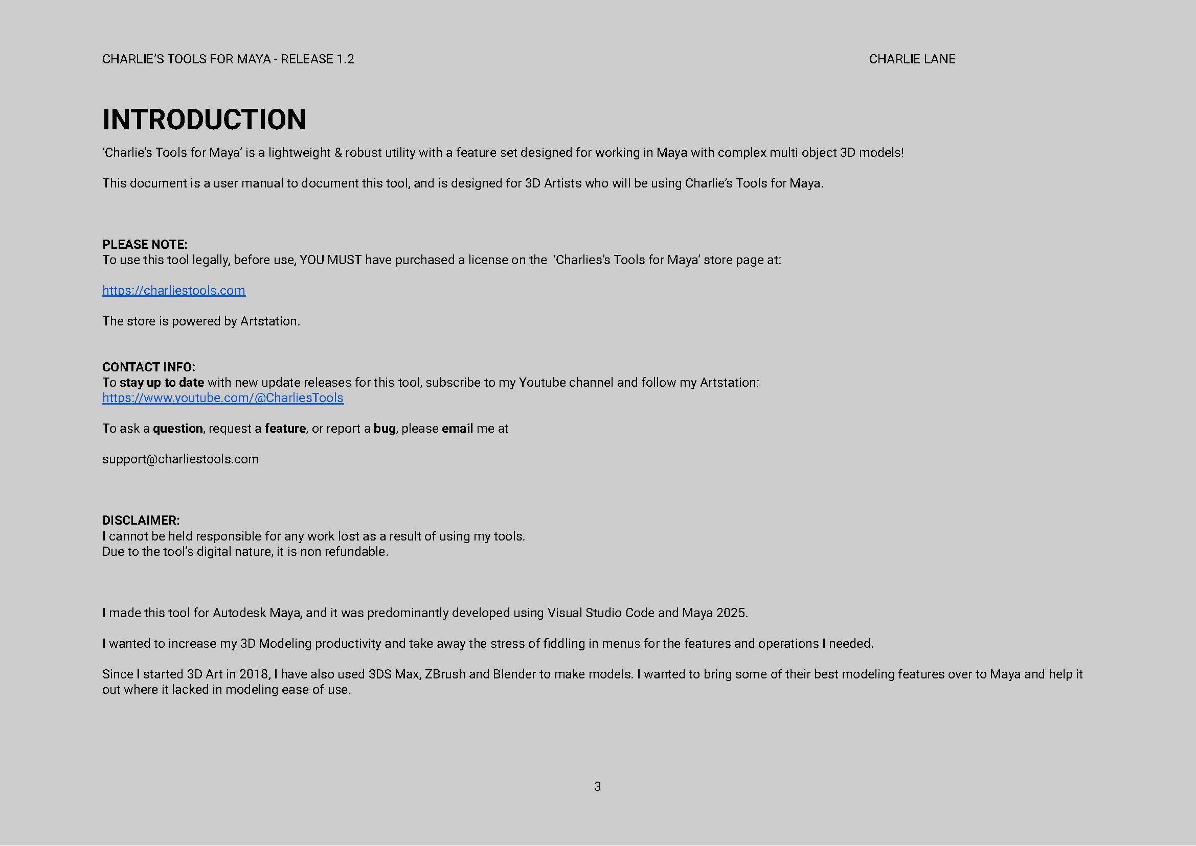To stay up to date with new update releases for this tool, subscribe to my Youtube channel and follow my Artstation: https://www.youtube.com/@CharliesTools
