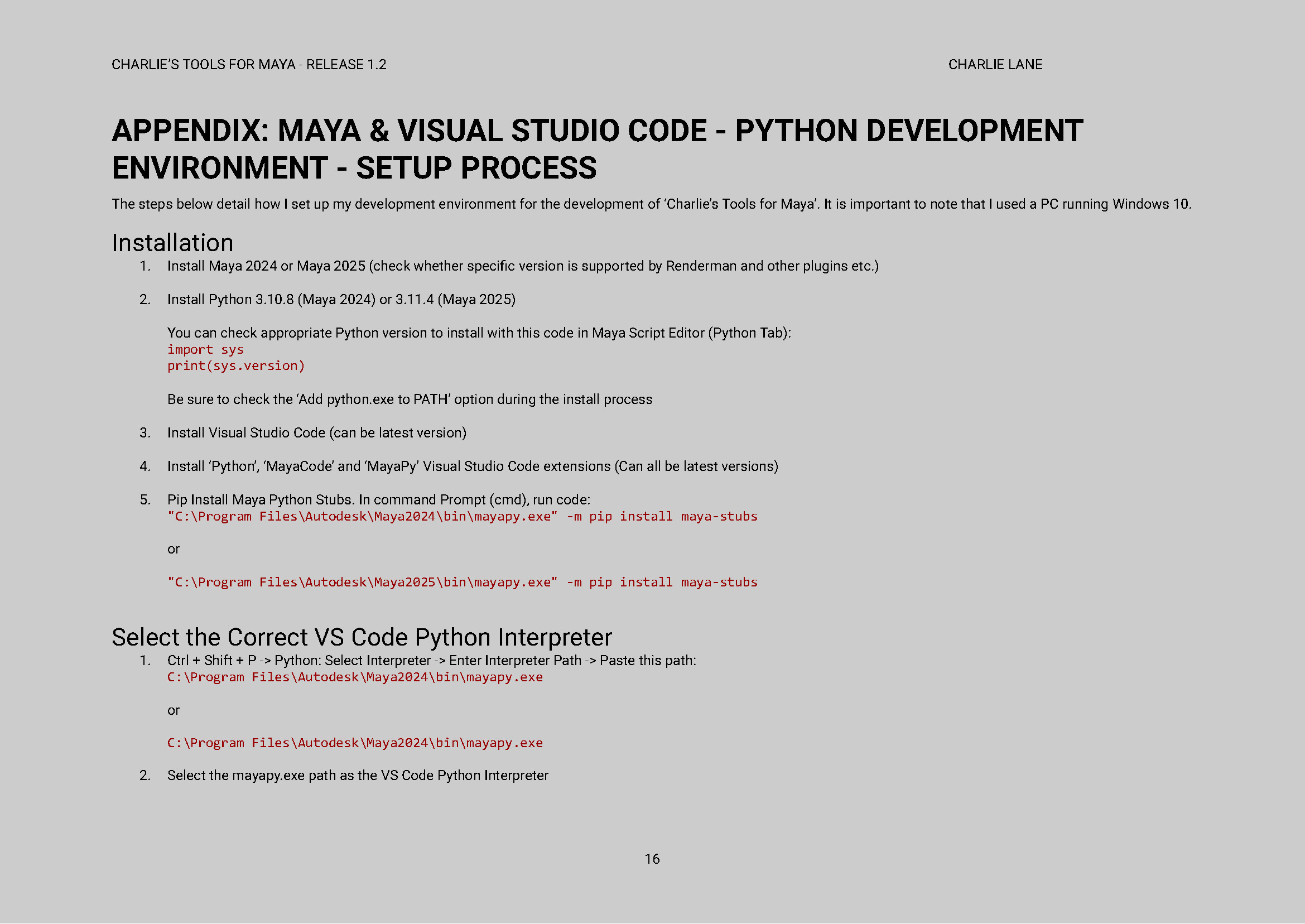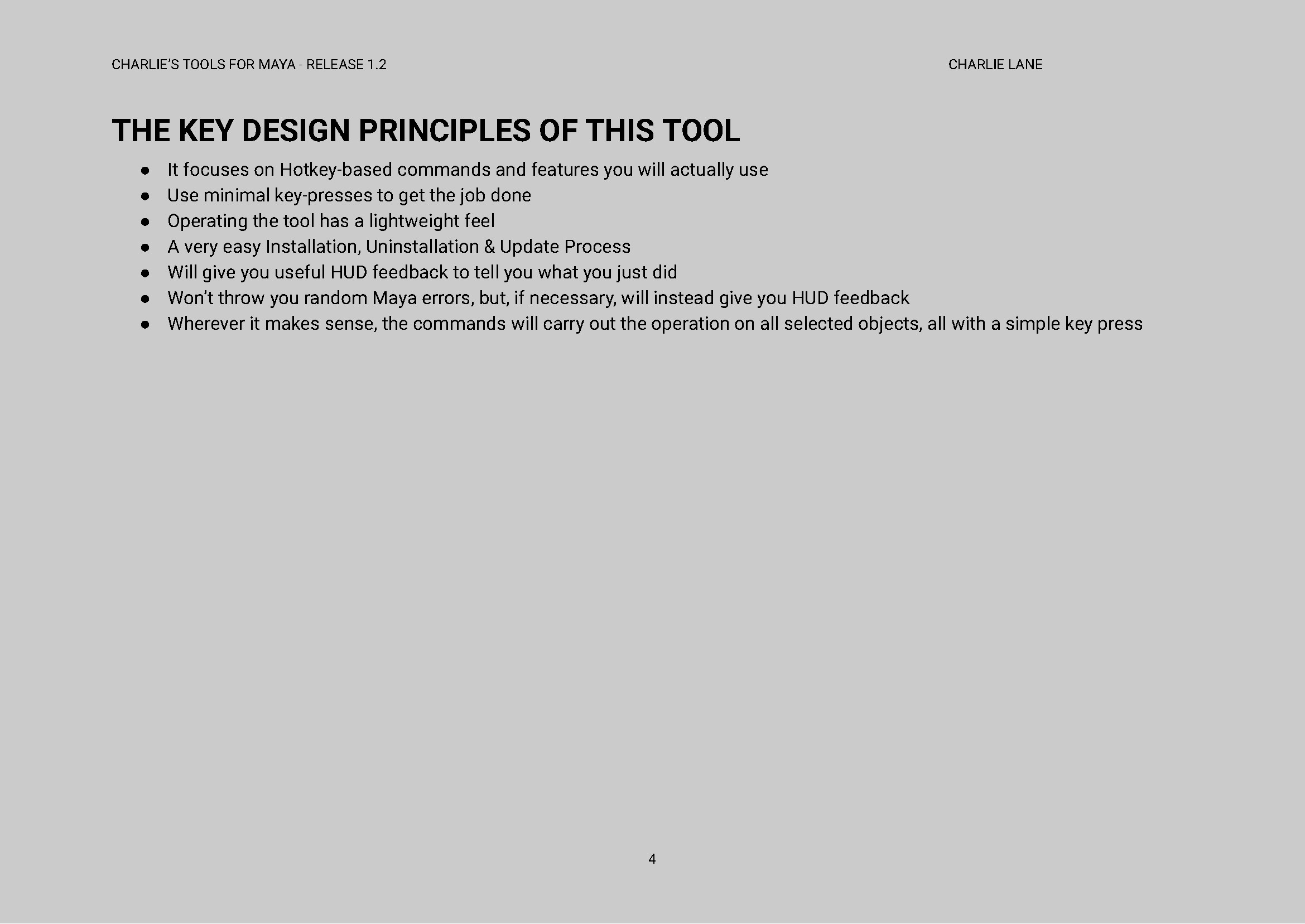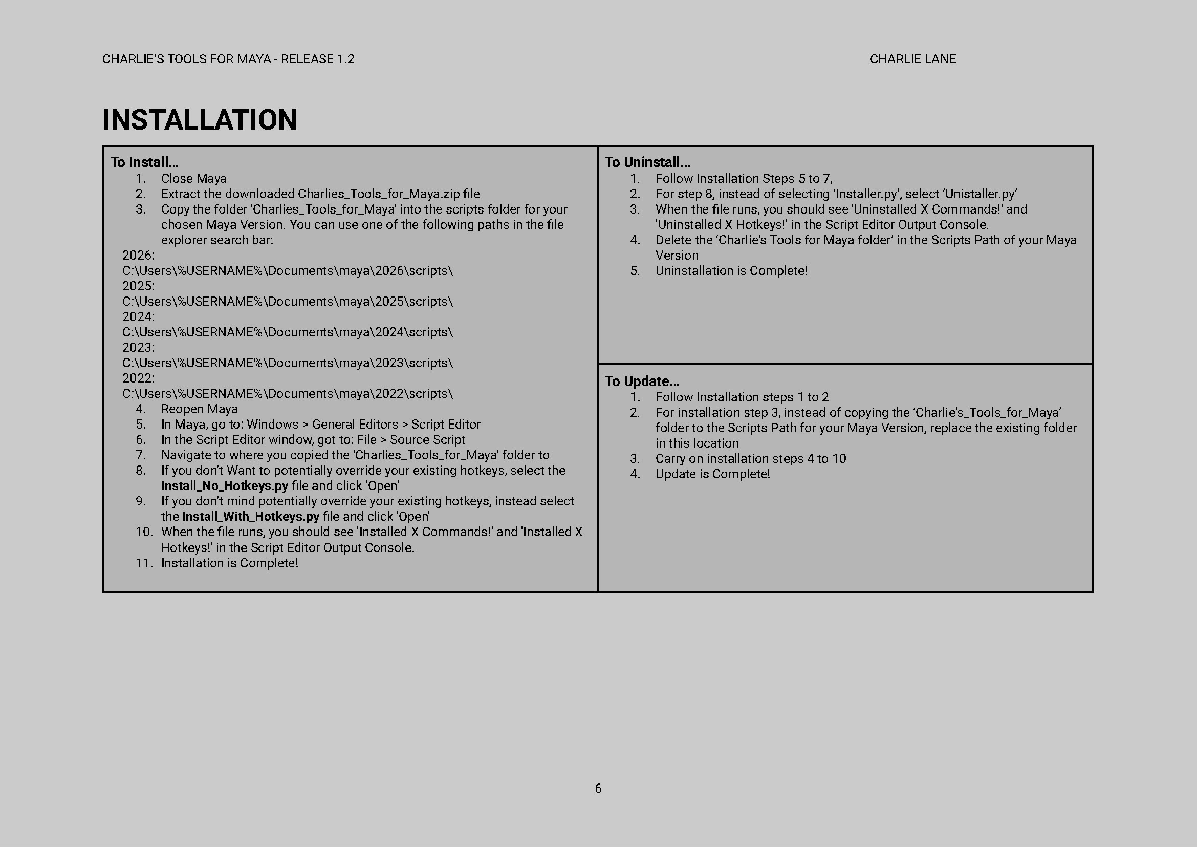 Access to all future 'Charlie's Tools for Maya' 1.x updates